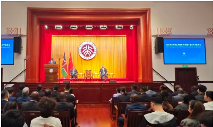 4月23日上午,鲁托总统前往北京大学进行参访并发表演讲,并与青年学生交流互动。鲁托总统在北京大学进行参访演讲中,回顾了肯中两国关系发展以及两国合作取得的丰硕成果。他指出,肯中两国的合作根植于历史传统,立足于共同利益,着眼于共同命运。目前中国已成为肯尼亚第一大贸易伙伴。在共建“一带一路”框架下,肯中两国开展了众多合作项目,正在重塑区域联通的新格局。
